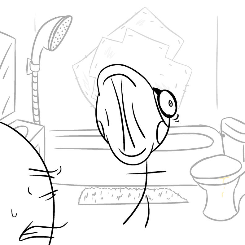 it's probably a bad idea to open this. Jumpy says to flush before using it. you specify you're not about to take a dump with someone in the room, and they nod. they're not gonna leave, so you'll have to hold it.oh, you don't have to go? then why are you lookin' at the toilet?