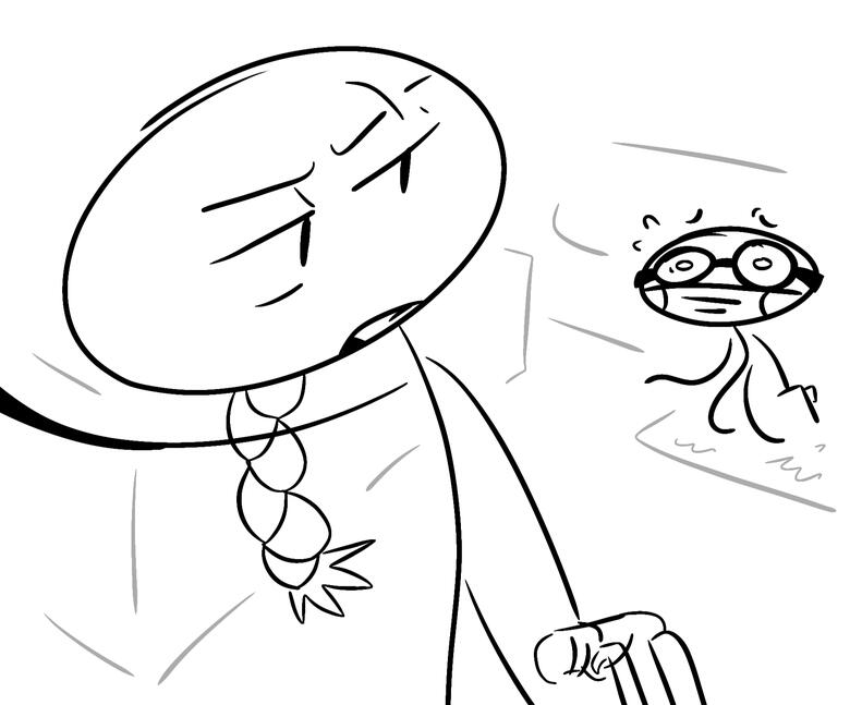 they frantically follow you, much to your annoyance. before you can brush them off, you're surrounded by the worst BO you've ever smelt.