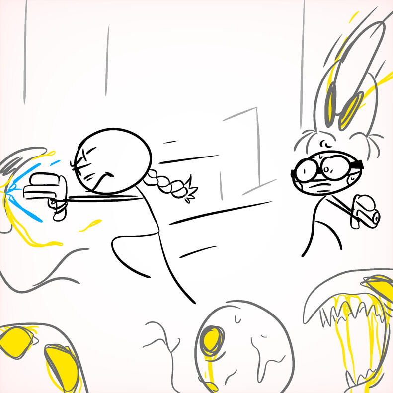 before the jumpy survivor can question you talking to yourself, you ask if they have any weapons. they pull out a couple water guns.